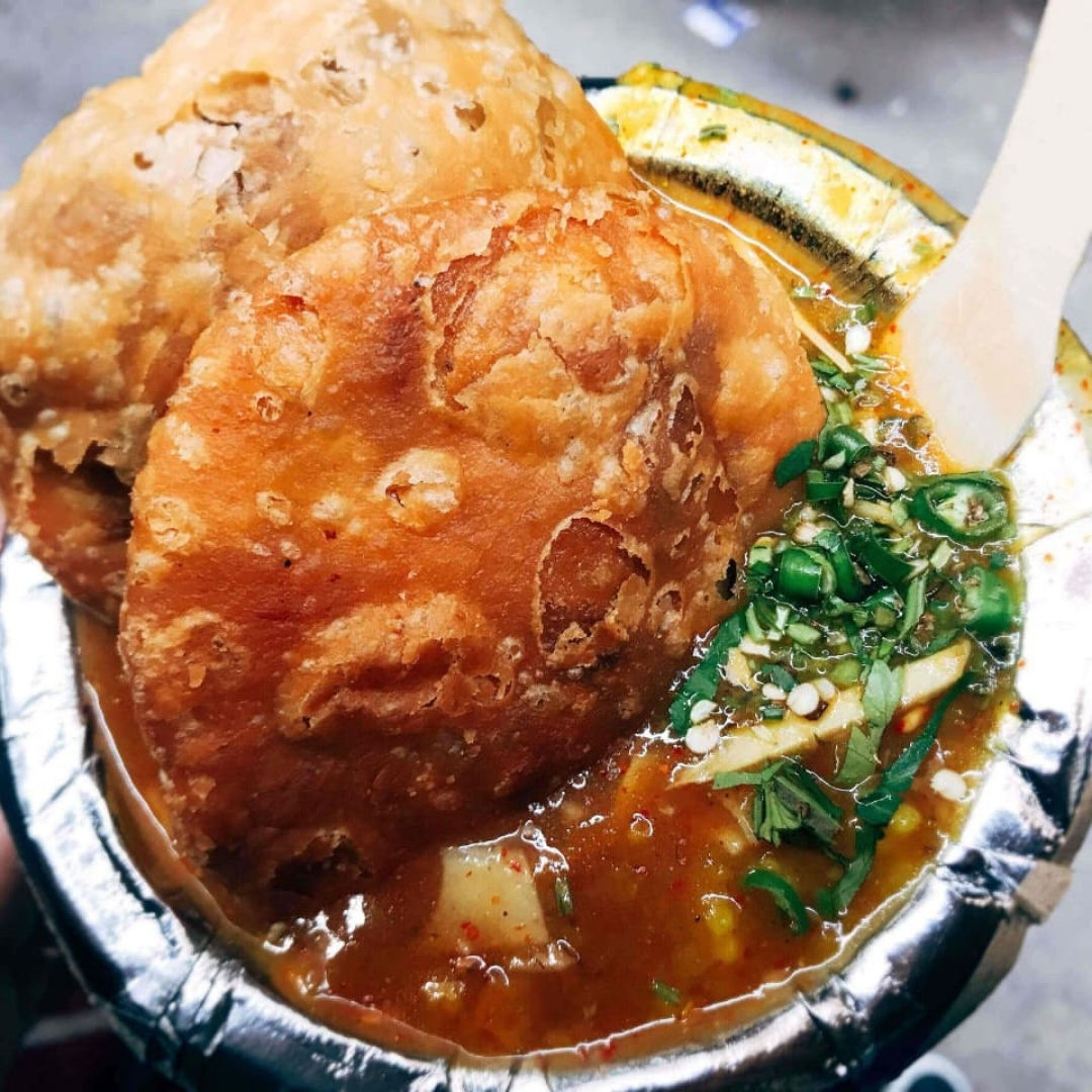 Chhole Bhature of JB Kachori Wala, Chandni Chowk is renowned for its fluffy bhature and rich, flavorful chhole. A classic Delhi indulgence that perfectly captures authentic street food taste.